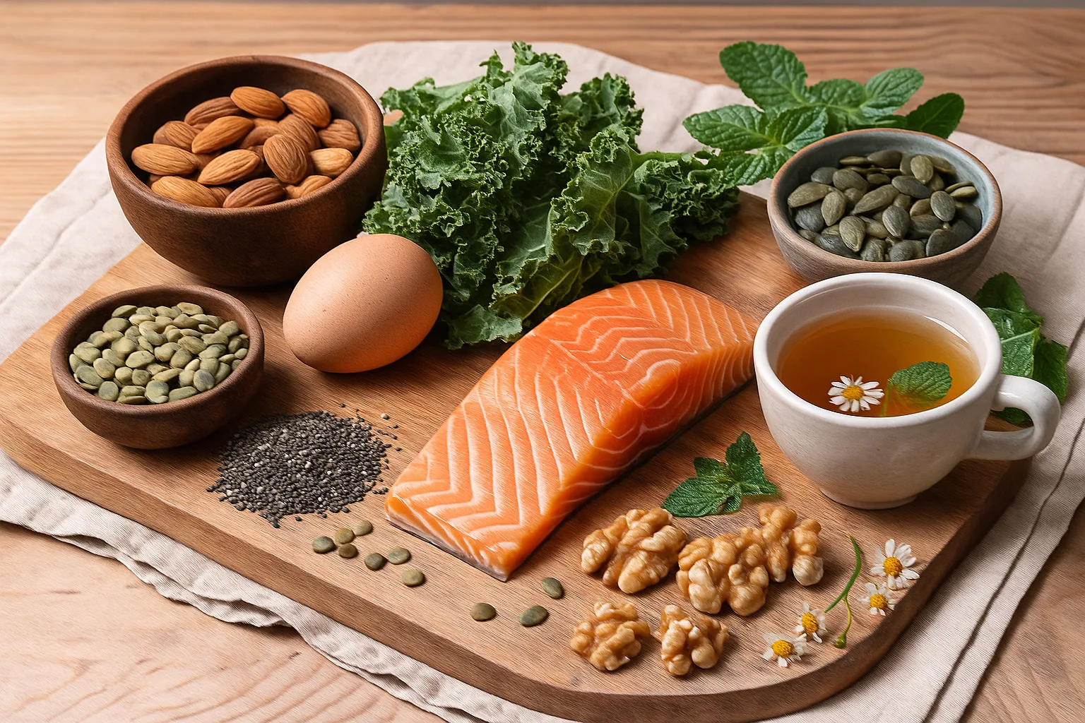 Bepaalde kruiden en warme dranken kunnen een rustgevend effect hebben. Kamille, lavendel en citroenmelisse zijn bekende natuurlijke ontspanners. Groene thee bevat daarnaast L-theanine, een aminozuur dat kalmerend werkt zonder slaperig te maken.